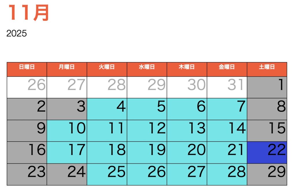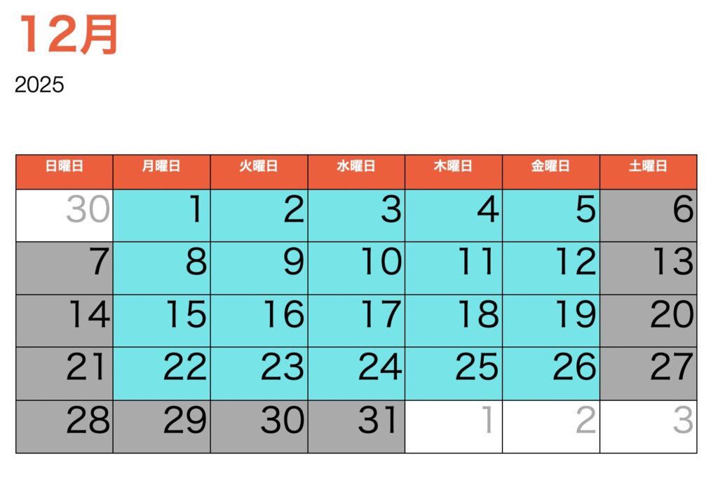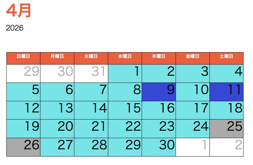 その他日にちにより可能業務が変わりますので、詳しくは下記のカレンダーをご参照下さい。