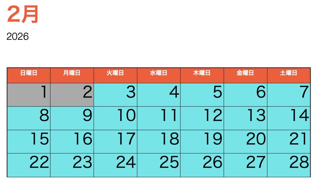 2回目以降の方のみ2週間前までのお申し込み可。ただし、お引き受けできない可能性もあるのでお早めにお申し込みください。